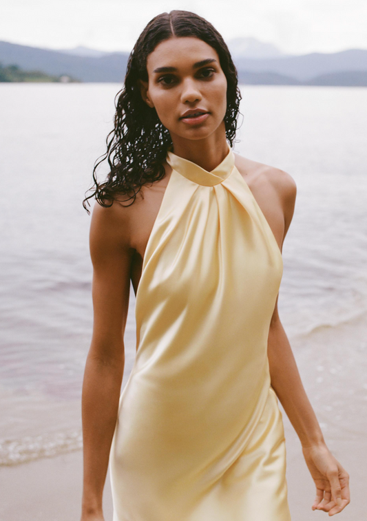 Lunara elegancka satynowa sukienka maxi z wycięciami