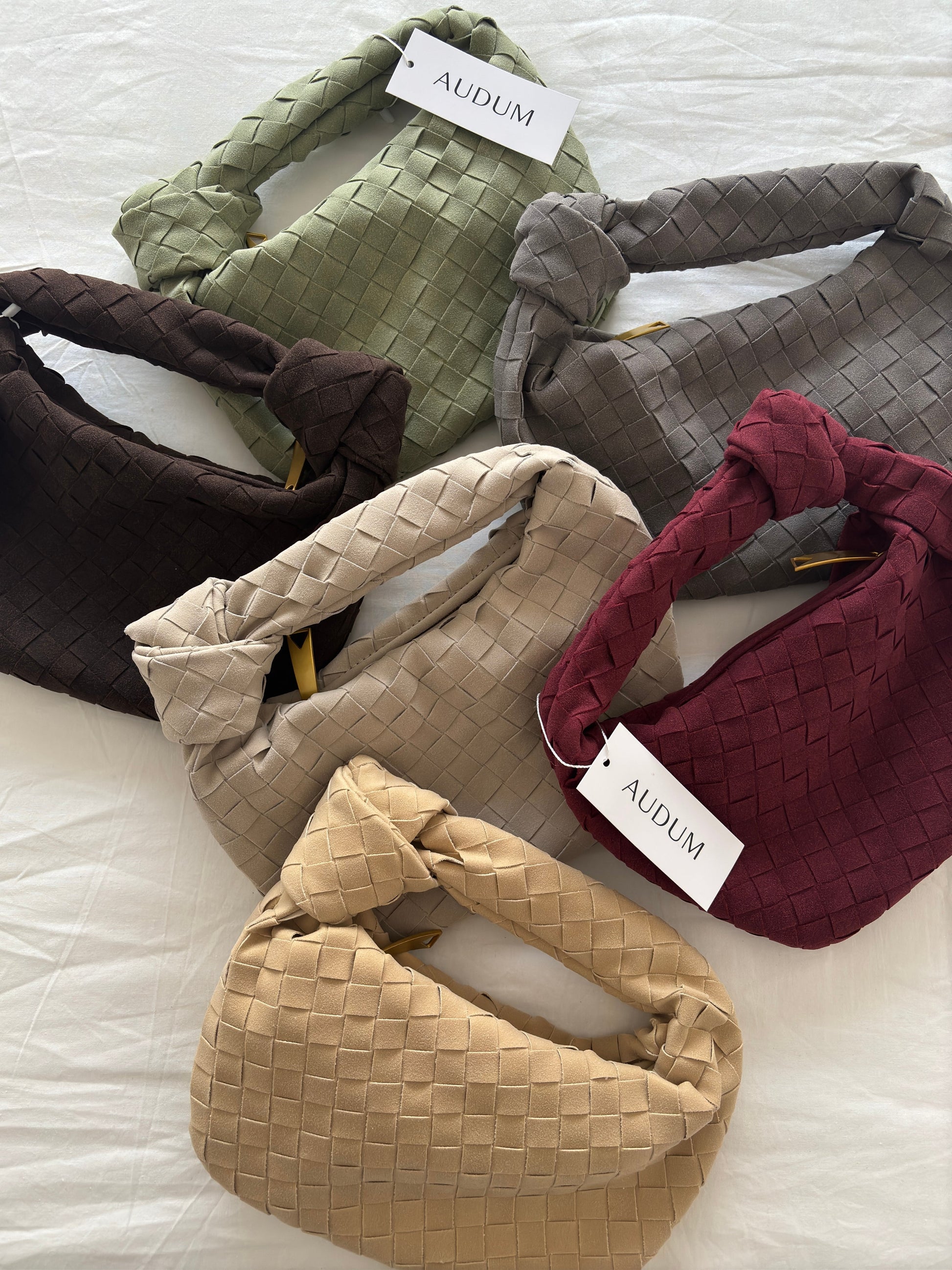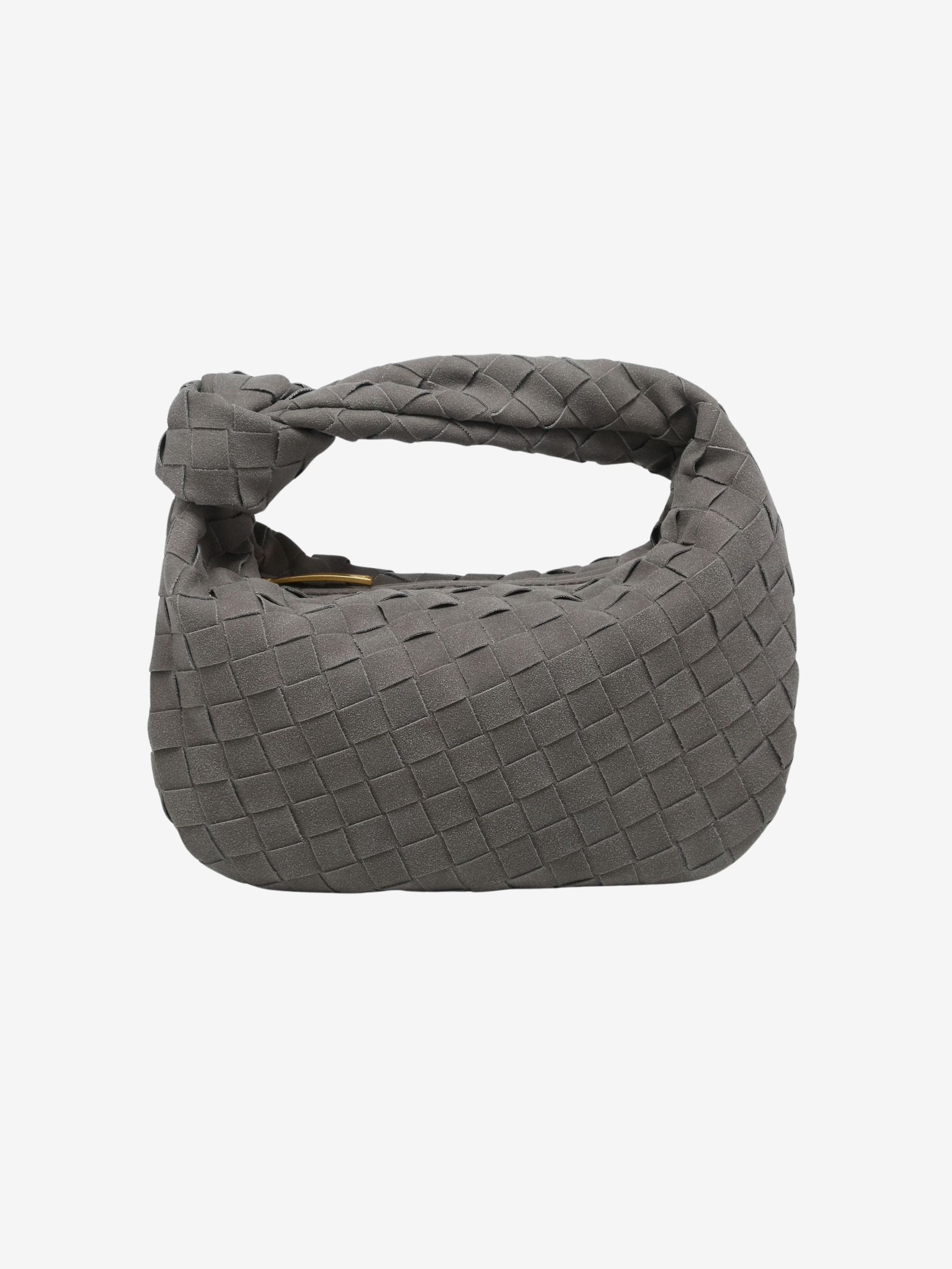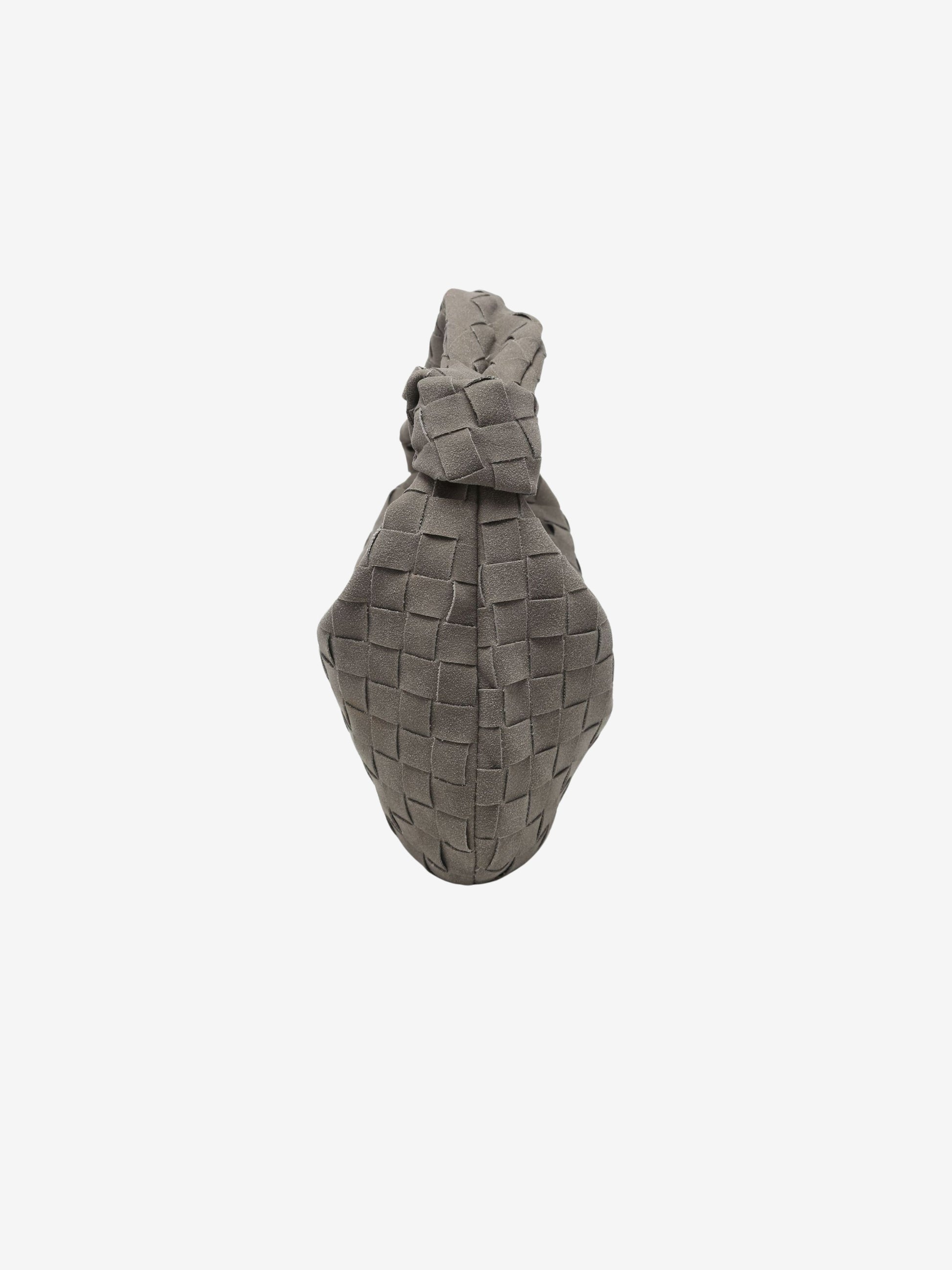 Torba Ava Mini Suede to elegancka torebka z uchwytem, o zaokrąglonym kształcie i plecionym wzorze. Idealna na miejską wyprawę, pomieści iPhone'a, błyszczyk i niezbędne drobiazgi.