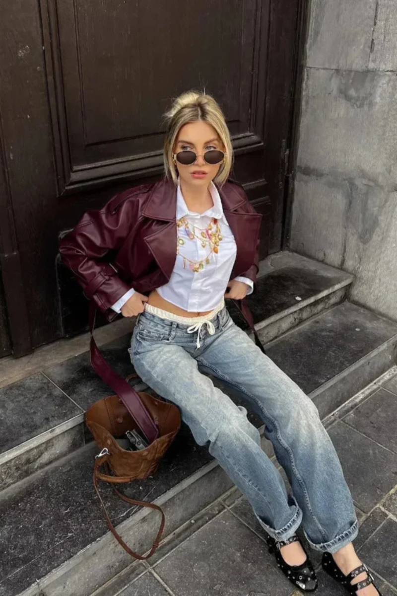 Poznaj kurtkę Isabella Vintage Faux Leather Jacket – ponadczasowy model łączący klasyczny styl lotniczy z nowoczesną elegancją.