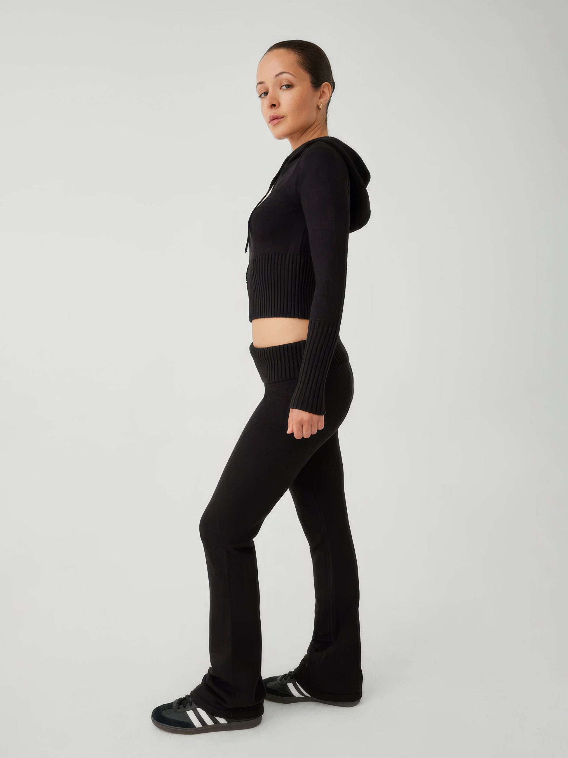 Porada dotycząca stylizacji: zestaw dzianinowy Lila Cloudline można połączyć z białymi trampkami i minimalistyczną biżuterią, aby uzyskać szykowny, swobodny look idealny do kolejnego filmu na TikToku.