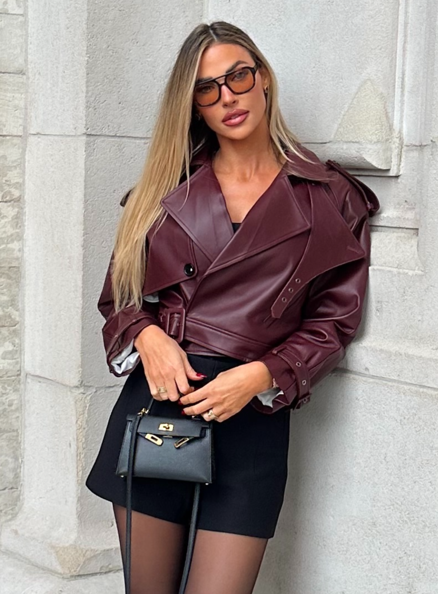 Porada dotycząca stylizacji: zestaw kurtkę skórzaną Victoria z jeansami z wysokim stanem i botkami, aby uzyskać swobodny, szykowny wygląd, idealny na każdą okazję.