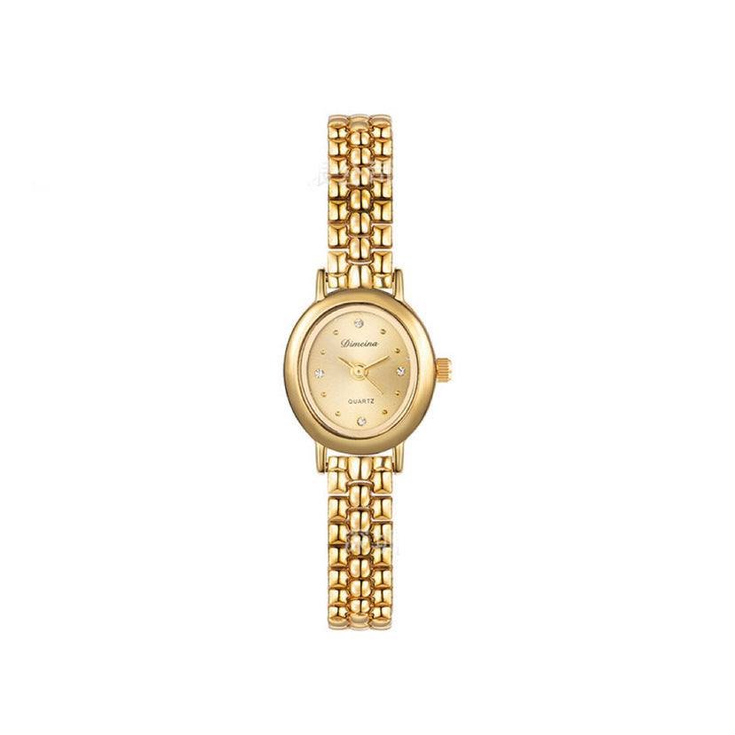• Złocona owalna tarcza z lśniącymi, kryształowymi akcentami zapewnia ponadczasowy blask.
