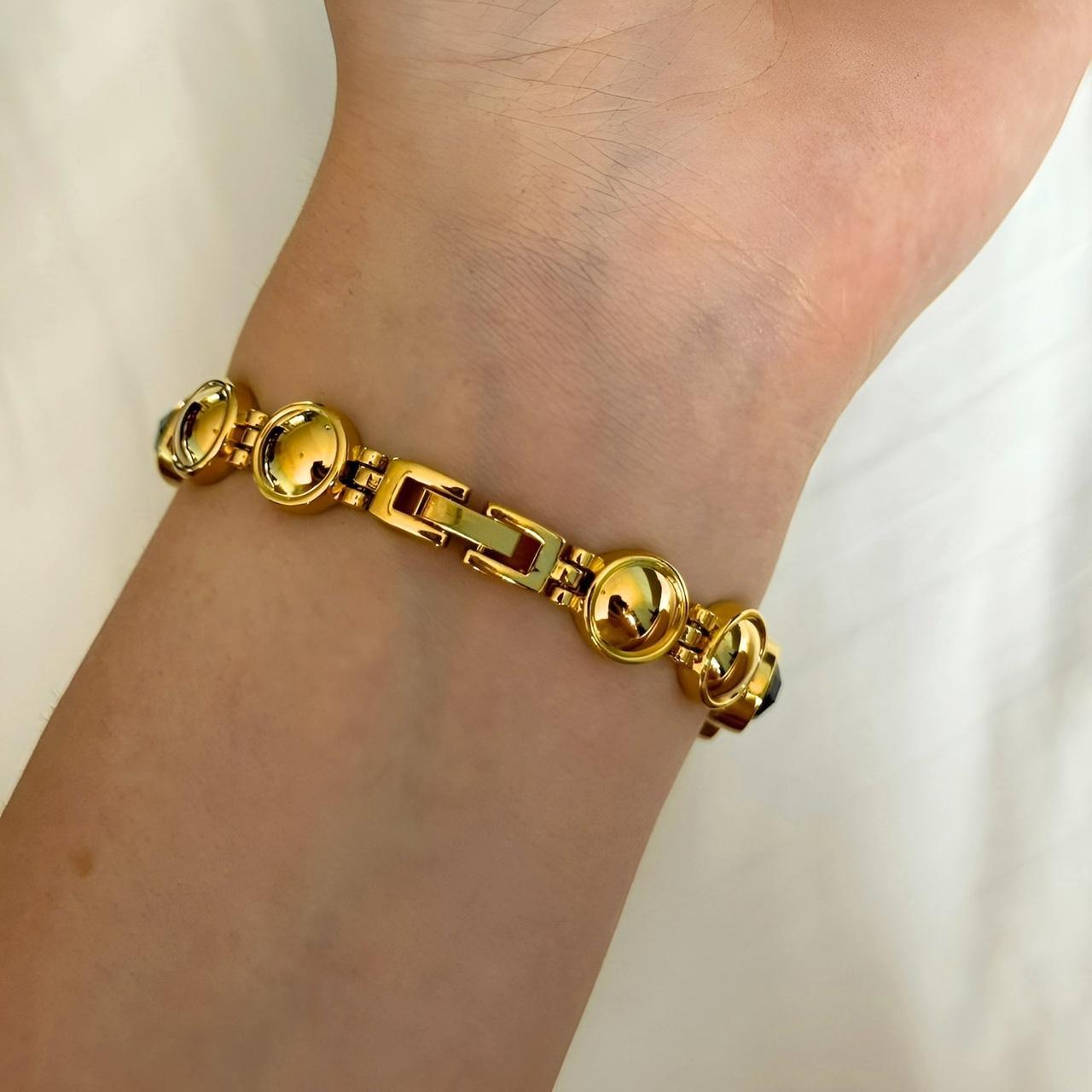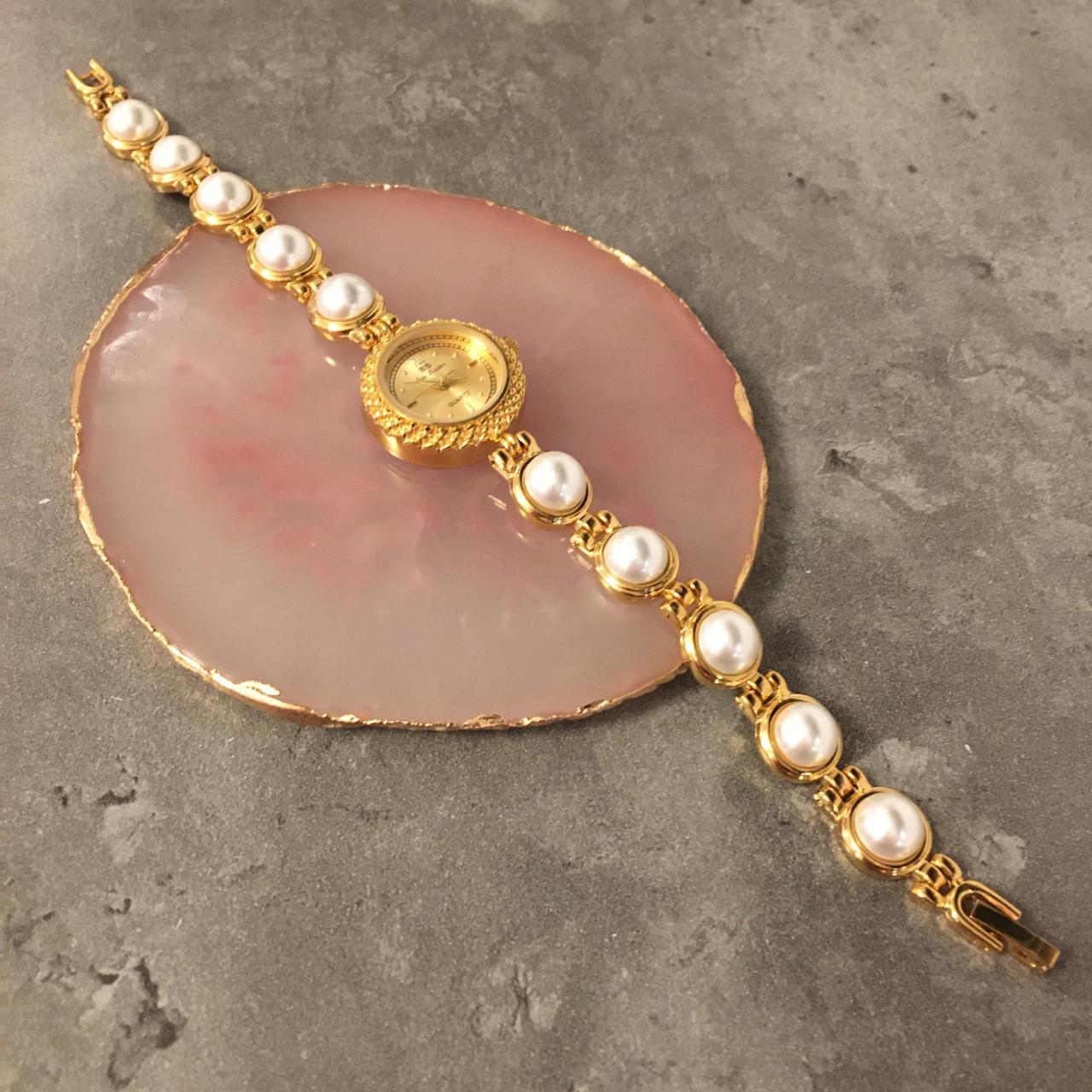 Maravelle łączy klasyczną elegancję z nutą przepychu, oferując połyskujące ogniwa z pereł i wyrafinowane, złote wykończenie. Idealny, aby dodać szyku zarówno dziennym, jak i wieczorowym stylizacjom to czasomierz, który pełni również rolę wyrafinowanej biżuterii.