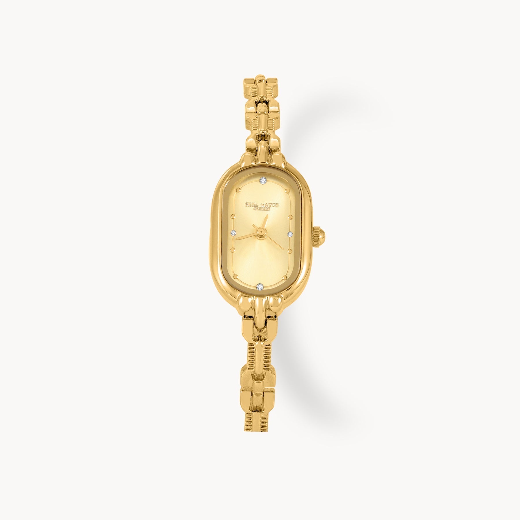 Marivelle emanuje ponadczasową elegancją dzięki wydłużonej, owalnej tarczy i olśniewającej bransolecie w odcieniu złota. Szykowny i wszechstronny, stanowi idealne wykończenie zarówno wyrafinowanych stylizacji dziennych, jak i wieczorowych.