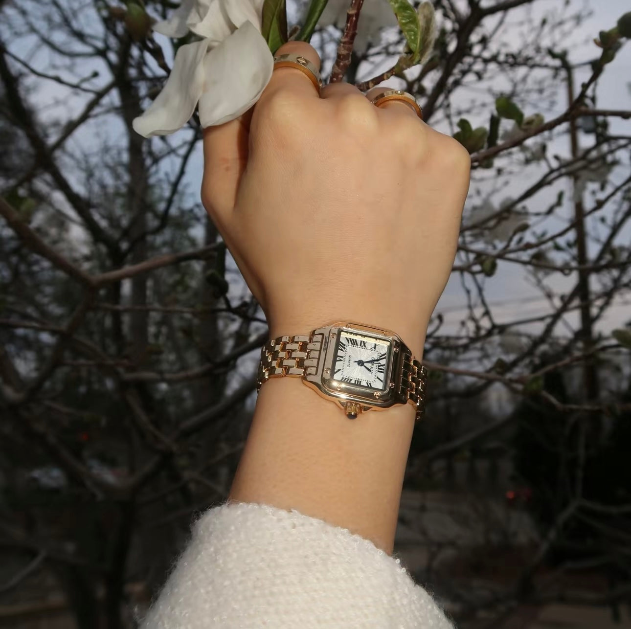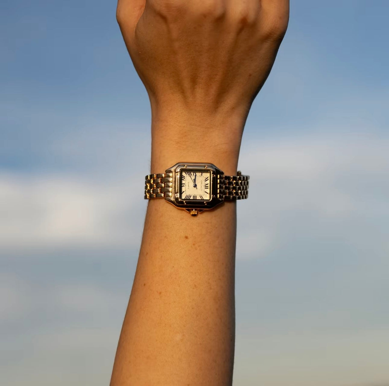 Poczuj ponadczasową elegancję z Aurivelle złotym zegarkiem z bransoletą ogniwową, zaprojektowanym, by dodać Twojemu nadgarstkowi odrobinę wyrafinowanego uroku. Tarcza z rzymskimi cyframi i kwadratowa koperta tworzą ponadczasowy, klasyczny charakter, który sprawdzi się zarówno w ciągu dnia, jak i wieczorem.